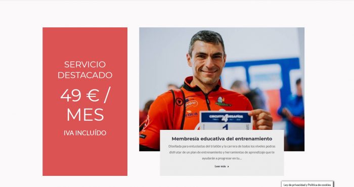 Esta web está destinada a ofrecer sus servicios coaching deportivo y entrenamientos de carrera, ciclismo y triatlón, así como a impartir cursos, talleres y demás formación sobre deporte.
