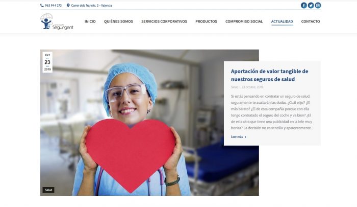 Desarrollo de la web de Segurgent 2000 Correduría de Seguros S.L., empresa radicada en Valencia y especializada en el área de asesoramiento y gestión de seguros.